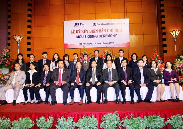 本公司與越南存款保險機構(Deposit Insurance of Vietnam, DIV)於民國95年12月簽署合作備忘錄(Memorandum of Understanding, MOU)後於本(98)年12月15日屆期,為持續強化雙方之合作交流、促進經驗與資訊分享,雙方同意續約,由DIV董事長Mr. Mai Minh De與本公司董事長陳上程共同代表雙方機構於12月11日假越南河內續簽MOU,新的合作備忘錄為期3年。簽約期間適逢DIV建立10週年慶,陳董事長並 應邀擔任週年慶活動貴賓,與會人員包括越南財政部、中央銀行及金融監理委員會等政府官員、專家及學者代表。